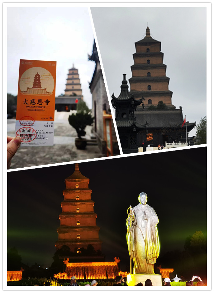 进西安,先拜佛。落脚于大慈恩寺,玄奘法师的雕像便伫立在那。天气并不晴朗,衬的大慈恩寺越发宝相庄严,风微凉,可闻风铃声。我们便于此时踏入寺内,凭是什么心情,入内也没由来的心静了下来。大雁塔古朴雄伟。角铃清越。好似千年来于它不过是捏花一笑间,于此,方知什么是本来无一物,何处惹尘埃;什么是色即是空,空即是色。